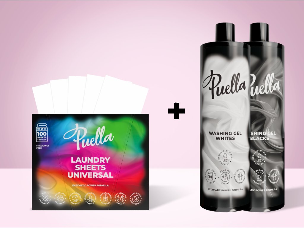 Puella żel do prania czarnych ubrań powstał na bazie sprawdzonej receptury naszego uniwersalnego żelu, ale został precyzyjnie dostosowany do potrzeb ciemnych tkanin. Zachowuje wszystkie zalety podstawowego produktu – skuteczne pranie, delikatność dla włókien i subtelny zapach – a dodatkowo zawiera specjalne ulepszenia.