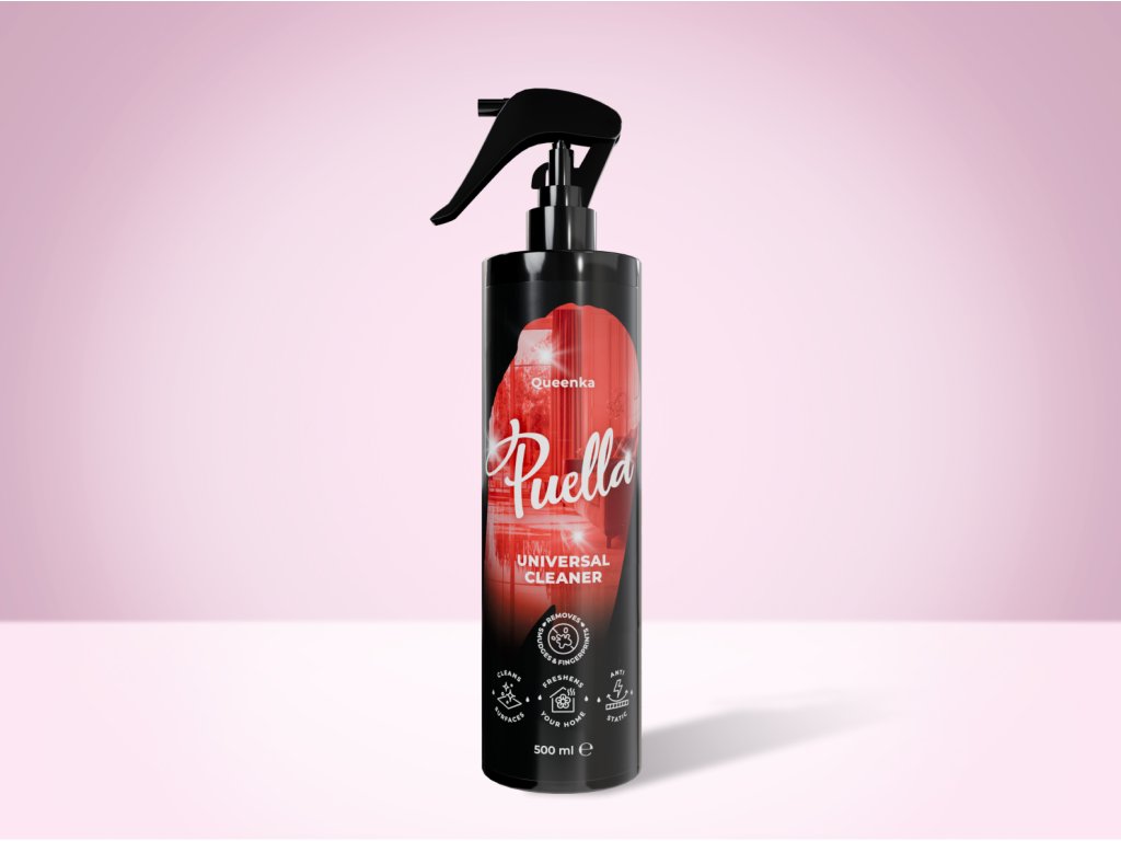 Wielofunkcyjny środek do czyszczenia w sprayu Puella o zapachu Queenka i zrównoważonym pH. Delikatnie, a jednocześnie skutecznie czyści wszystkie powierzchnie, usuwa kurz, smugi oraz odciski palców, nadając Twojemu domowi wyjątkowy zapach.