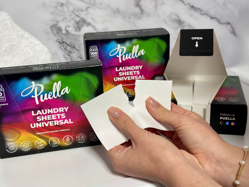 Listki piorące Puella to niezastąpiona pomoc w każdej domowej pralni. Proste i skuteczne, ułatwiają codzienną rutynę prania, a dzięki kompaktowemu opakowaniu oszczędzają cenną przestrzeń, eliminując potrzebę ciężkich butelek i nieporęcznych opakowań. Z listkami Puella pranie staje się nie tylko praktyczne, ale także maksymalnie wygodne!