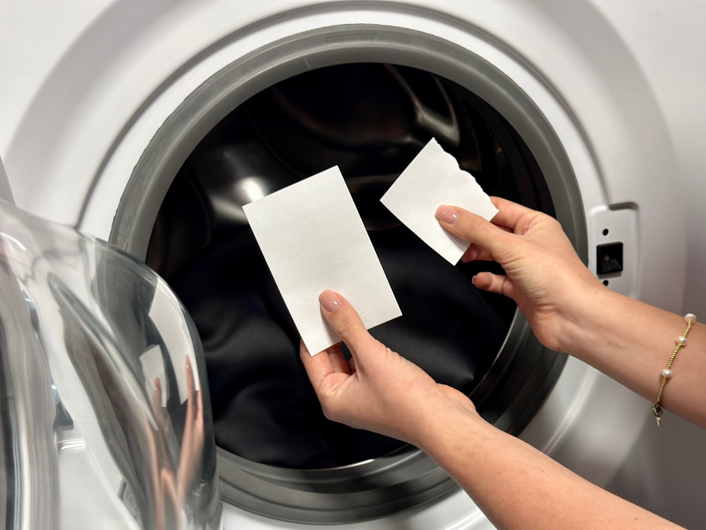 - Łatwe dozowanie – listki wystarczy włożyć bezpośrednio do pralki z ubraniami.